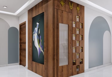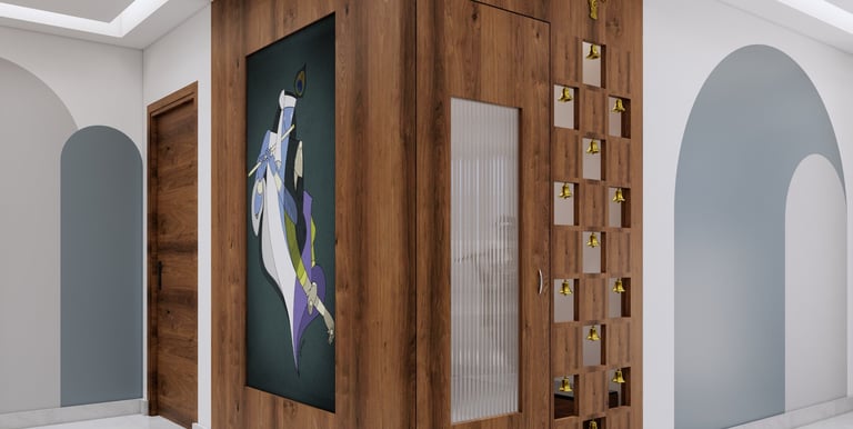 Discover Pooja Mandirs which are beautifully crafted to create a serene and spiritual ambiance, offering a perfect blend of functionality and elegance while optimizing space for your religious essentials.