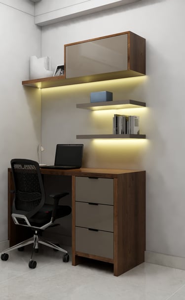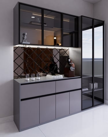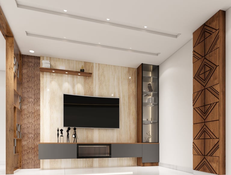 At Lakhi Architects and Interiors, we specialize in creating stunning spaces with custom wardrobes, TV units, pooja mandirs, and more tailored to your needs.